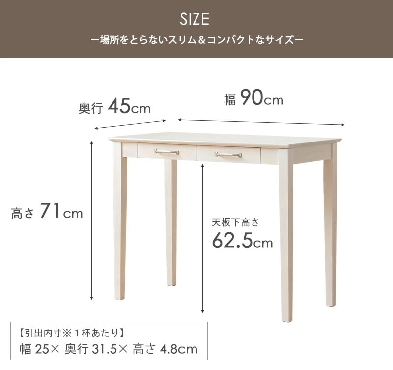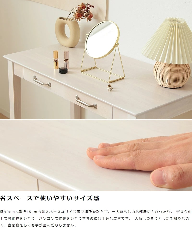 デスク 白 省スペース ネイルデスク おしゃれ 北欧 木製 パソコンデスク 90cm アンティーク 引き出し ドレッサー テーブル ホワイト 可愛い 勉強机 テレワーク スリム 韓国 インテリア コスメ 収納 一人暮らし iw-1280