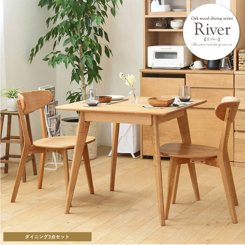 ダイニング3点セット ダイニングテーブルセット 幅80cm ダイニング テーブル チェア2脚 2人 おしゃれ ダイニングセット 3点セット 木製 無垢 北欧 オーク 天然木 正方形 2人用 二人用 2人掛け ナチュラル